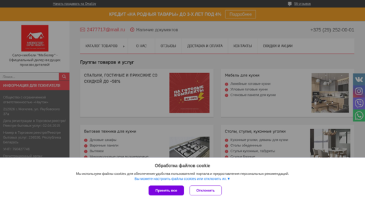| AI-анализ | The web project "Saloon Mebeleyar" is an official dealer of leading furniture manufacturers. It is an online furniture store with a wide range of products for interior decoration. The store offers low prices on kitchen, living room, and bedroom furniture. The contact information for inquiries is provided as +375 (33) 359 63 32. The company "Nautek" registered in Mogilev, Belarus, on January 18, 2016, operates the website under the .BY domain mebelyar.by. The store's physical location is at pr-t Mir, d. 59 in Mogilev, Belarus. The store's hours of operation are Monday through Sunday, 10:00-19:00 for the living room department, and 10:00 |