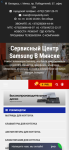 | AI-анализ | --- The portal Samsung Service in Minsk, Belarus offers repair services for Samsung televisions, laptops, monitors, smartphones, soundbars, receivers, columns, and computers. Visitors can also purchase Samsung televisions, laptops, soundbars, smartphones, monitors, tablets, and Chromebooks. The website features categories for various Samsung products, including Galaxy Book series, Galaxy Tab series, and QLED TVs. Repair and purchase inquiries can be made through several phone numbers and email addresses provided on the site. The company offers a range of monitors, including curved and TV-tuner models, as well as various types of SSDs for storage needs. |