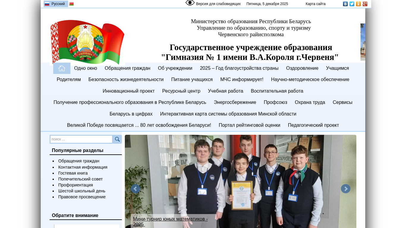 Название / ЗаголовокГимназия №1 имени В.А.Короля г.Червеня