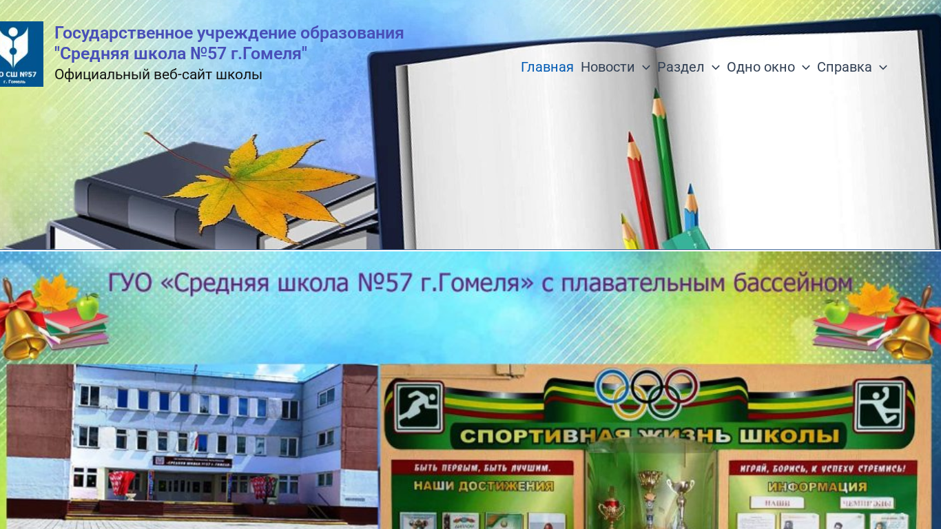 | Название / Заголовок | ГУО "Средняя школа №57 г.Гомеля" | Главная | О школе |