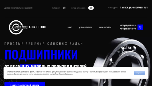 | Адрес | подшипник подойдет именно вам?, оставить заявку, бренды, /, 0, /, 0, /, 25, /, 25, Наш адрес, г. Минск, ул. Ф.Скорины 52/4 |