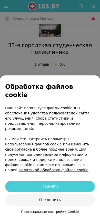 | Название / Заголовок | 33-я городская студенческая поликлиника г. Минска – телефоны регистратуры, отзывы, адреса и график работы, карта проезда, заказать талон на медицинском портале 103.by. |