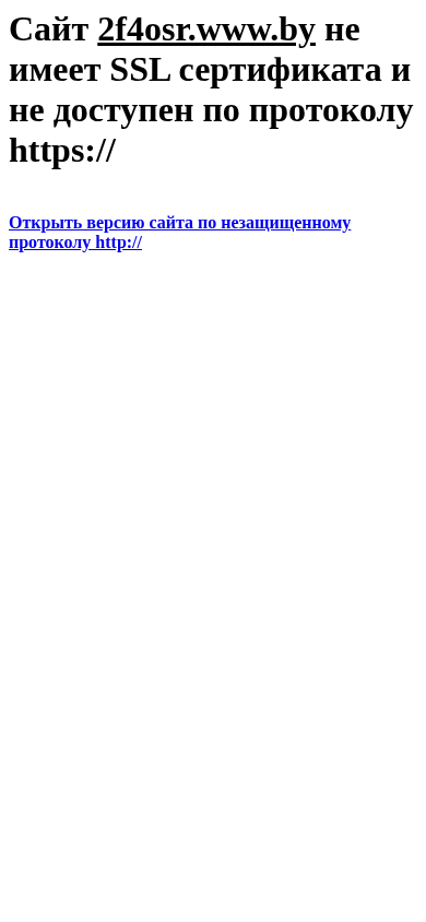 | AI-анализ | The website 2f4osr.www.by does not have an SSL certificate and is not accessible via the https:// protocol. It can only be opened using the http:// protocol. |