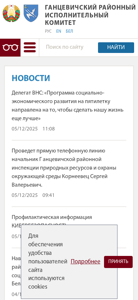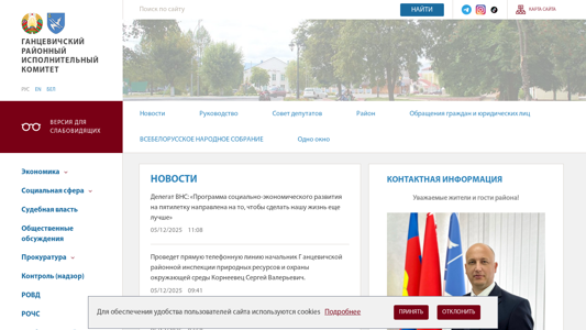 | AI-анализ | --- The web project "Gantsevichi.brest-region.gov.by" is a local government website for the Gantsevichi district in Belarus. The site contains information on the district's administration, including the names and contact information of its leaders, such as the chairman of the district executive committee (Павел Волчёк) and the chairman of the district council of deputies (Юрий Шапель). The site also includes information on the district's structure, history, and contact details for various departments and committees. The site offers a public inquiry section for citizens to submit proposals for improving the quality of life and services in the district. The site also includes information on various administrative procedures and the "One Window" service for simplifying the process of interacting with the authorities. The site's keywords include "Belarus," "republic," "entrepre |