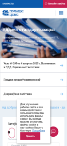 | AI-анализ | This website is the official online platform for the Polotsk City State Executive and Administrative Committee (PolotskCSMS) in Belarus. The title is "Галоўная" which translates to "Main" or "Head" in English. The description is not provided, but the keywords give an indication of the website's content. The top words include "аддзел" (organ), "паслуг" (services), "нфармацыя" (pharmacy), "пра" (law), "сертыф" (certification), "аформ" (forms), "кацы" (cats), "кам" (stone), "актуальная" (current), "нав" (new), "анлайн-зая" (online application), "дзяржа" (state), "рэспубл |