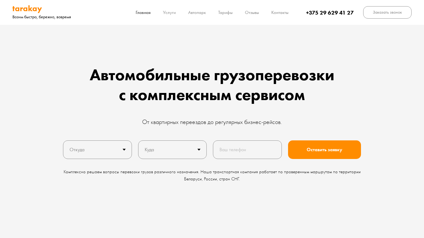 | SEO-описание | Транспортная компания Tarakay предоставляет транспортные услуги грузовых перевозок и логистики в Минске. Транспортные задачи любой сложности. Быстрая доставка ✅ Любые объёмы ✅ Tarakay |