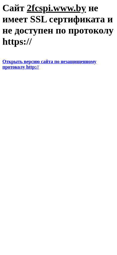 | Robots.txt | Открыть robots.txt<head><meta http-equiv="Content-Type" content="text/html; charset=windows-1251" /><meta http-equiv="refresh" content="3; url=http://2fcspi.www.by/robots.txt"></head> <body><h1>Сайт <u>2fcspi.www.by</u> не имеет SSL сертификата и не доступен по протоколу https://</h1><br><b><a href="http://2fcspi.www.by/robots.txt">Открыть версию сайта по незащищенному протоколу http://</a></b></body></html> |