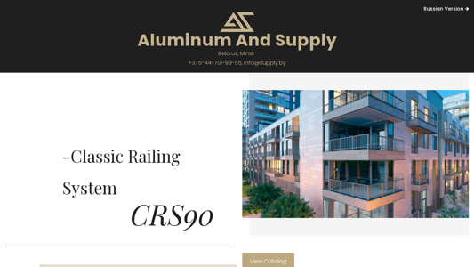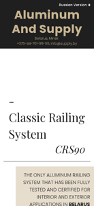 | AI-анализ | This website is dedicated to aluminum railing system CRS90, designed and manufactured in Minsk, Belarus. The system is fully tested and certified for interior and exterior applications in Belarus and the USA. The website provides information about the product, its features, and benefits. Visitors can learn about the design and production team, and the company's ownership of the design, production, and testing facilities. The website offers a catalog view and mentions easy fabrication, assembly, and installation with minimal tools. It also highlights the availability of all components in a standard finish and the option for LED lights integration. The website includes contacts for inquiries and provides information on the location of the company. The domain is en.supply.by. |