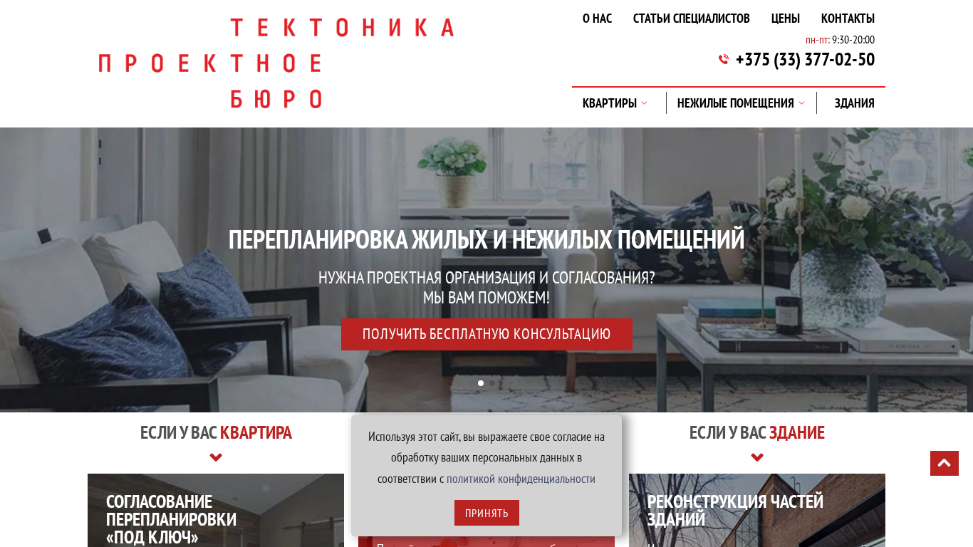 | SEO-описание | Проектная организация Тектоника осуществляет ✅Разработку и согласование проекта перепланировки ✅Узаконивание перепланировок ✅ Смену назначения помещений в Беларуси |