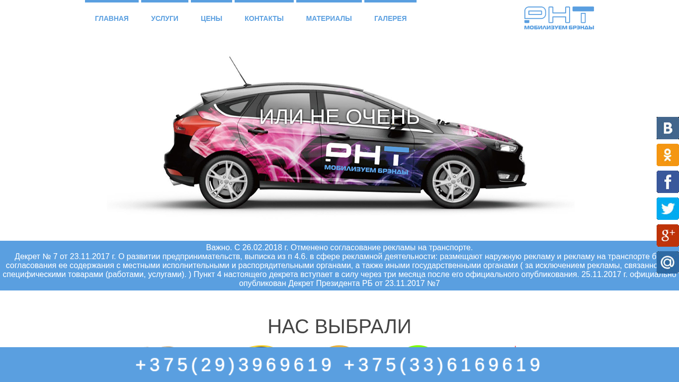 | AI-анализ | --- The portal "Reklama-na-transporte.by" offers advertising services on transport and branding of vehicles in Minsk and throughout Belarus. The menu includes options for corporate vehicle advertising and advertising on public transport, as well as stickers for cars. The company has over 10 years of successful operation and over 1000 satisfied clients. Services are provided without the need for transport type, whether large or small, or even without wheels. The decree from 26.02.2018 abolished the need for approval of transportation advertising content with local executive and regulatory bodies, as well as other state organizations, except for specific goods or services. The decree took effect three months after its official publication on 25.11.2017. The portal was chosen for advertising on transport in the modern world, where reclama stimulates sales, increases |