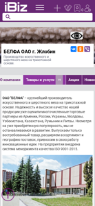 This online resource is a Belarusian business website for BelFA OAO, a company located in the city of Zhobin, producing artificial and woolen fur on a knitted fabric base. The website includes sections for company information, products and services, news, and vacancies. The company specializes in the production of various types of fur for upper clothing, as well as for underlining and winter footwear, with wool content ranging from 100% to synthetic materials for decorative items and children's toys. BelFA OAO has been successful in the market for over 40 years, with a reputation for reliability and high-quality products, which have been recognized by numerous trading partners in countries such as Armenia, Russia, Ukraine, Moldova, Uzbekistan, Kazakhstan, Romania, and Lithuania. The company continues to innovate and expand