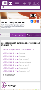 | AI-анализ | This online resource is a veterinary station website named Берестовицкая районная ветеринарная станция ГУ - Райветстанция. It offers veterinary services including treatment, vaccination, and laboratory tests for animals. The contact information, address, and map for reaching the station are provided. The website also includes sections for company information, products and services, veterinary services, news, announcements, vacancies, videos, and customer reviews. The company's Unified State Register number is 500020657. The operating hours are Monday to Friday from 9:00 AM to 6:00 PM without lunch breaks, and the station is closed on Saturdays and Sundays. The contact details include several phone numbers and a fax number. The website is in the 'Ветеринарные услуги, уход за животными' category |