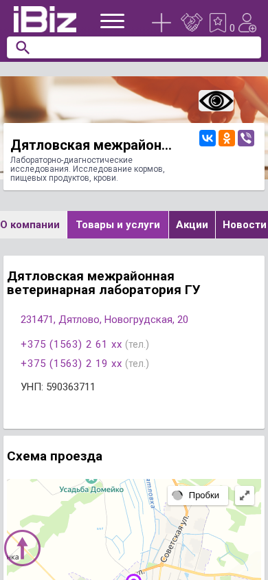 | Название / Заголовок | Дятловская межрайонная ветеринарная лаборатория ГУ - Лабораторно-диагностические исследования. Исследование кормов, пищевых продуктов, крови.. 231471, Дятлово, , Новогрудская, 20 |