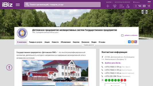 | Название / Заголовок | Дятловское предприятие мелиоративных систем Государственное предприятие - ПМС. Проведение мелиоративных работ.. 231482, , Козловщина г.п., Хмельницкого Богдана, 12 |