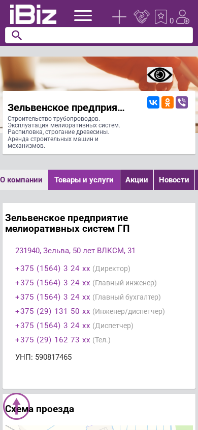 | Название / Заголовок | Зельвенское предприятие мелиоративных систем ГП - Строительство трубопроводов. Эксплуатация мелиоративных систем. Распиловка, строгание древесины. Аренда строительных машин и механизмов.. 231940, Зельва, , 50 лет ВЛКСМ, 31 |