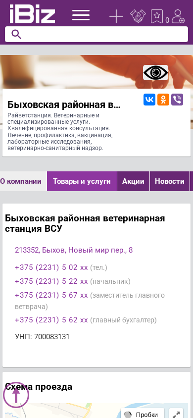 | Название / Заголовок | Быховская районная ветеринарная станция ВСУ - Райветстанция. Ветеринарные и специализированные услуги. Квалифицированная консультация. Лечение, профилактика, вакцинация, лабораторные исследования, ветеринарно-санитарный надзор.. 213352, Быхов, , Новый мир пер., 8 |