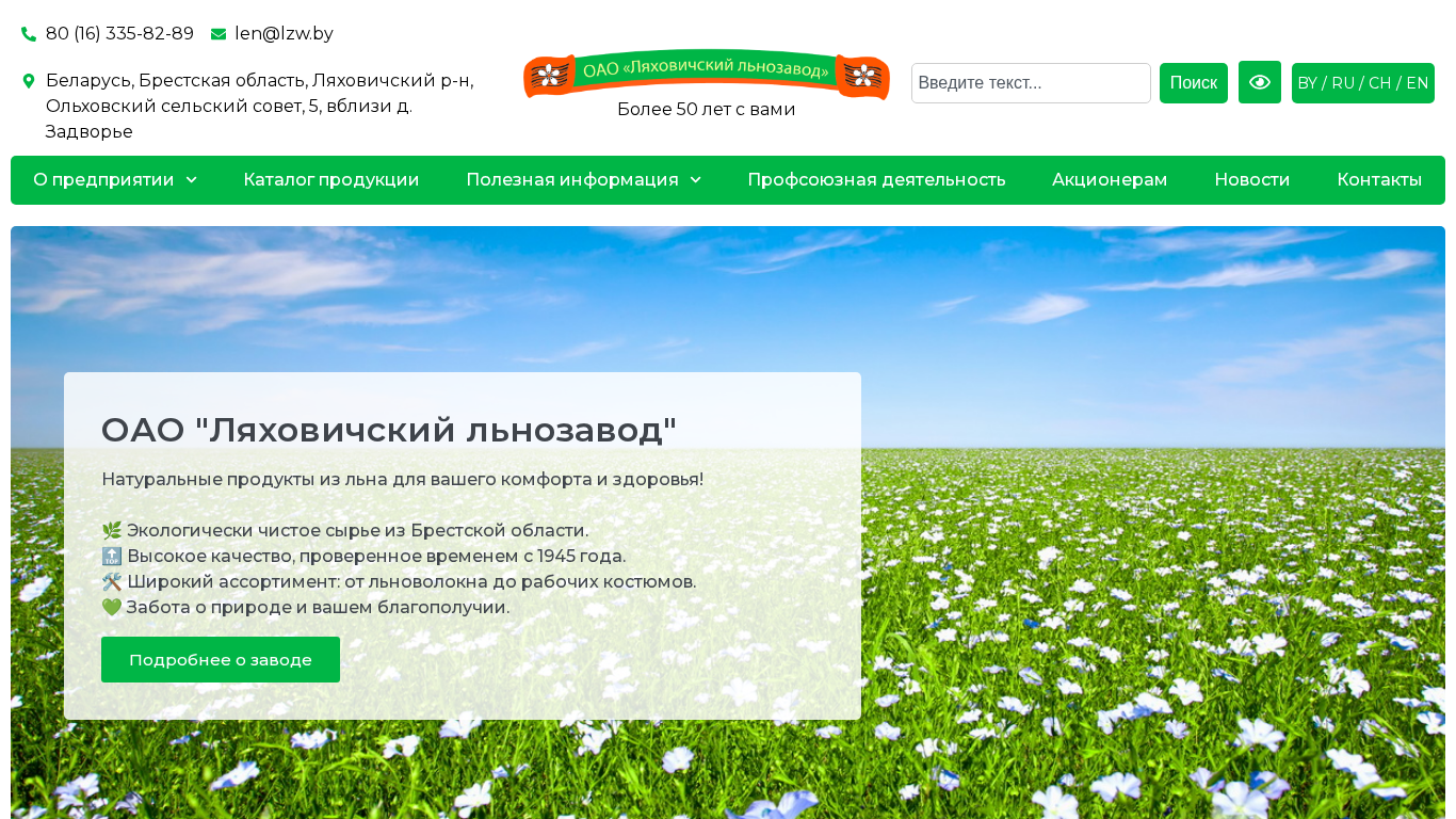 | Название / Заголовок | Главная - ОАО "Ляховичский льнозавод" |