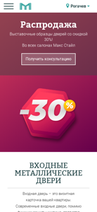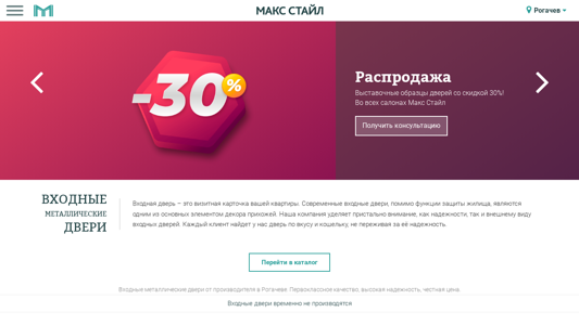 | SEO-описание | Металлические двери в Рогачеве от производителя по низким ценам. Входные двери любого класса защиты в Рогачеве. Макс Стайл Рогачев - это 12 лет успешной работы и тысячи довольных клиентов. |