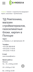| Название / Заголовок | ТД Ремтехника, магазин стройматериалов, газосиликатные блоки, кирпич в Полоцке | Каталог организаций на GOROD214.by |
