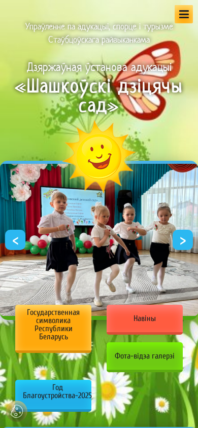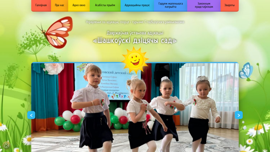 | AI-анализ | --- This online resource, titled "Шашкоўскі дзіцячы сад" (Shashkovski dzietsy sad), is a Belarusian educational institution website. Keywords associated with the site include "education," "preschool," "kindergarten," "policy," "relations," "processing," "children," "2025," and "2026." The website provides information on the institution's history, traditions, achievements, policies regarding personal data and cookies, and various tasks and functions related to preschool education. It offers an administrative procedure window, a project corner, a virtual metadidactic cabinet, and schedules for special organized activities during the 2025/2026 academic year. The site also includes rules for pedagogical workers, a resource for nurturing a little patron, thematic days in the |