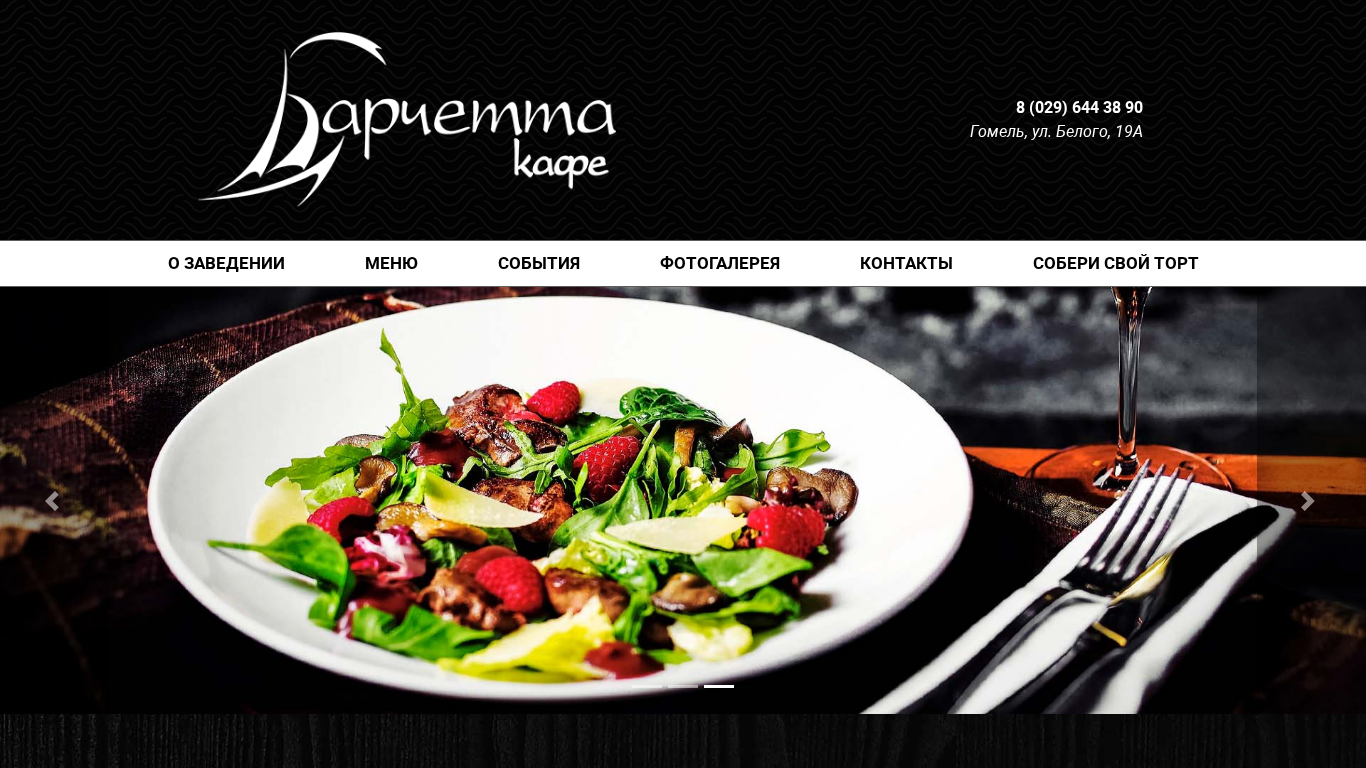 | SEO-лексика | контакты 029 644 гомель белого кафе барчетта 19а меню событие заказать столик работы 00-23 заведении события фотогалерея собери свой торт |