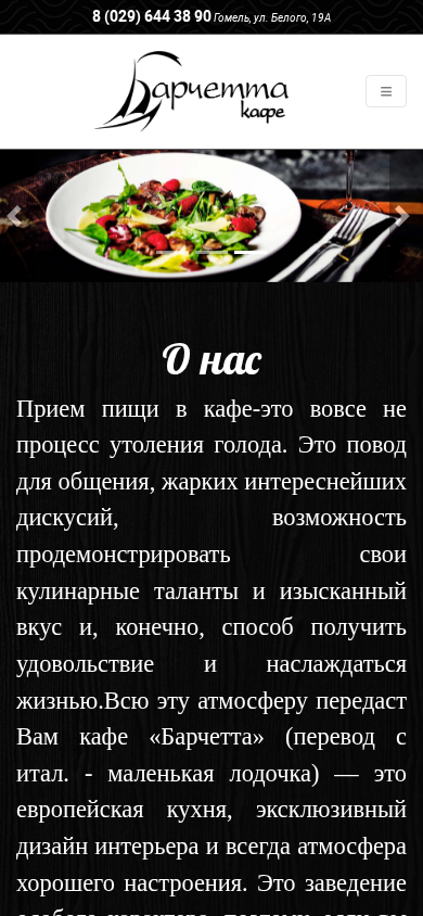 | Адрес | СТОЛИК, форма заказа, Создание сайтов, WEBSTUDIO.BY, Контакты, Кафе Барчетта, 8 (029) 644 38 90, Гомель, ул. Белого, 19А |