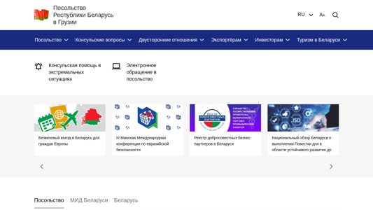 | AI-анализ | The web project is the official website of the Embassy of the Republic of Belarus in Georgia. It provides extensive information on consular services, visa procedures, and other matters related to the embassy's functions. Key topics include contacts, consular queries, documentation, and citizenship issues. The site also covers administrative procedures, notarial services, and the registration of civil acts. Additionally, it offers information on living and working in Belarus for foreigners, including rules, registration, and border crossing procedures. The site is available in both Russian and Belarusian languages. |