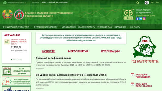 | Адрес | Контакты, ЭЛЕКТРОННЫЙ РЕСПОНДЕНТ, Главное статистическое управление Гродненской области, 230009, г. Гродно, ул. Врублевского, 3 |