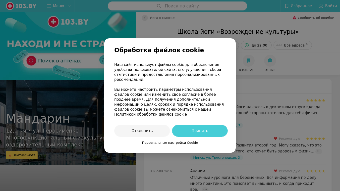 | AI-анализ | The website is for a yoga school named "Возрождение культуры" (Revival of Culture) located in the settlement of Borovlyany, Minsk, Belarus, at address 40 лет победы 13. The website provides information about the school's operating hours, phone numbers, and customer reviews. Users can also find a map and directions to the school on the site. The school offers yoga classes for individuals and groups, including a special program for mothers with children. The instructors are attentive to each student and accommodate individual needs, providing both practical instruction and theoretical material on living in harmony with oneself and the world. The website is part of the medical portal 103.by. |