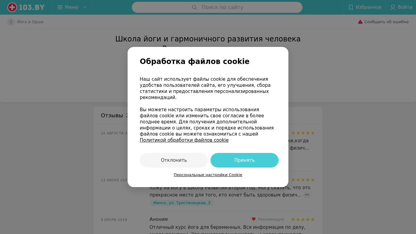 | Название / Заголовок | Школа йоги и гармоничного развития человека Возрождение культуры Орша ул. 1 Мая 41: отзывы, телефоны, график работы |
