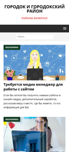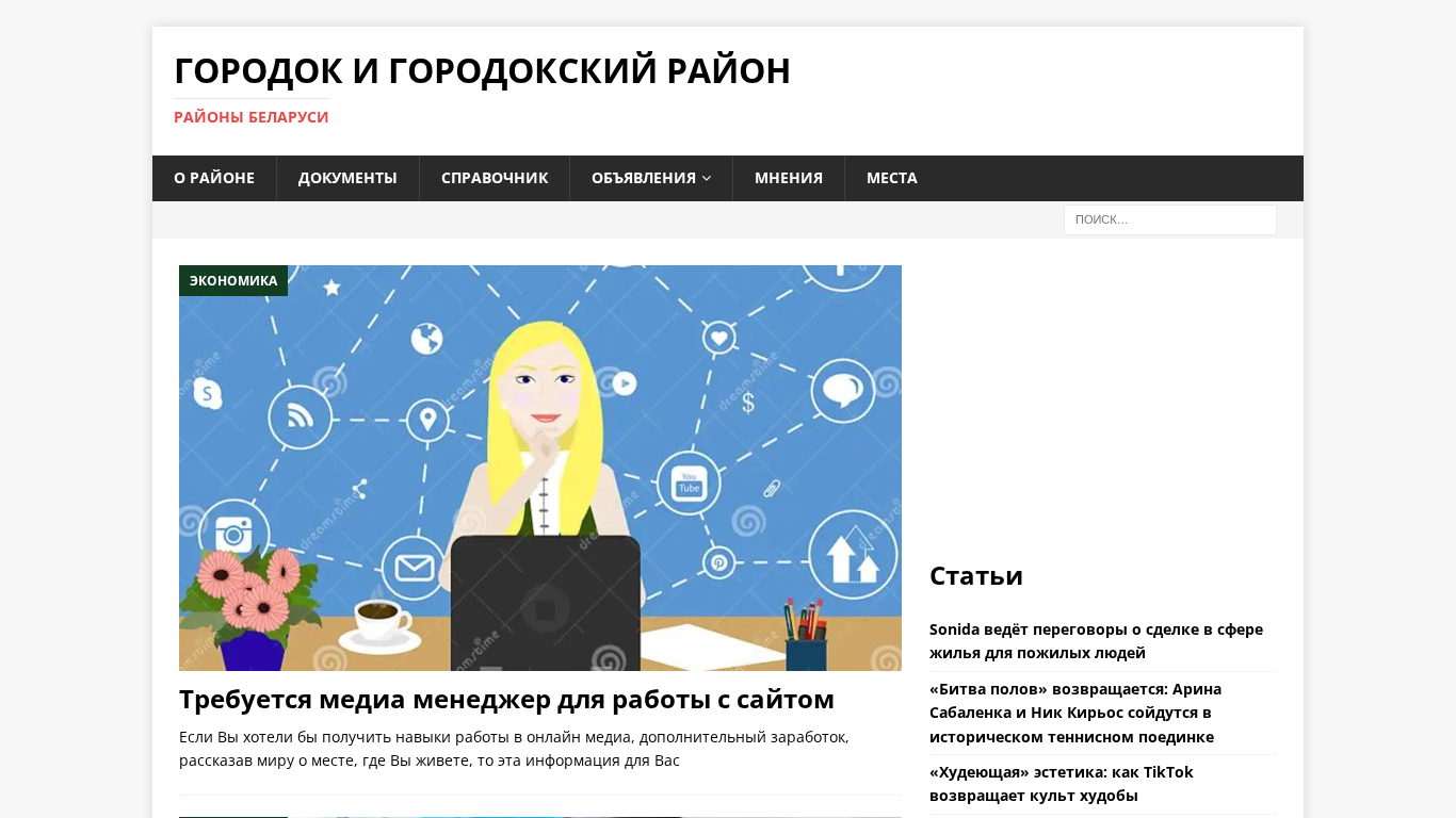 | AI-анализ | This website is a regional directory for the districts of Belarus, specifically focusing on the regions of Gorodok and Gorodoksky. The site includes a menu with sections for the region, documents, a sprovichnik (sic), announcements, and the ability to add and manage content and opinions. The homepage features articles on various topics such as economic opportunities, job listings, and local news. The site is seeking content managers, photographers, and media managers to contribute to the site. The site also includes press releases from MTS, a telecommunications company, regarding their internet and television services. |