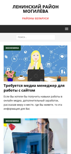 This website serves as a regional reference guide for Leninsky District in Mogilev, Belarus. The title and description suggest that it is a part of a larger platform, "Районы Беларуси" (Districts of Belarus), which provides information on various regions in Belarus. The main topics covered on the website include documents, a reference book, announcements, and opinions, as well as places related to the district. The website includes a menu with sections such as "О район" (About the District), "Документы" (Documents), "Справочник" (Reference Book), "Объявления" (Announcements), "Мнения" (Opinions), and "Места" (Places). The website is seeking content managers, media managers, and photo models for various purposes. It also includes press releases from M