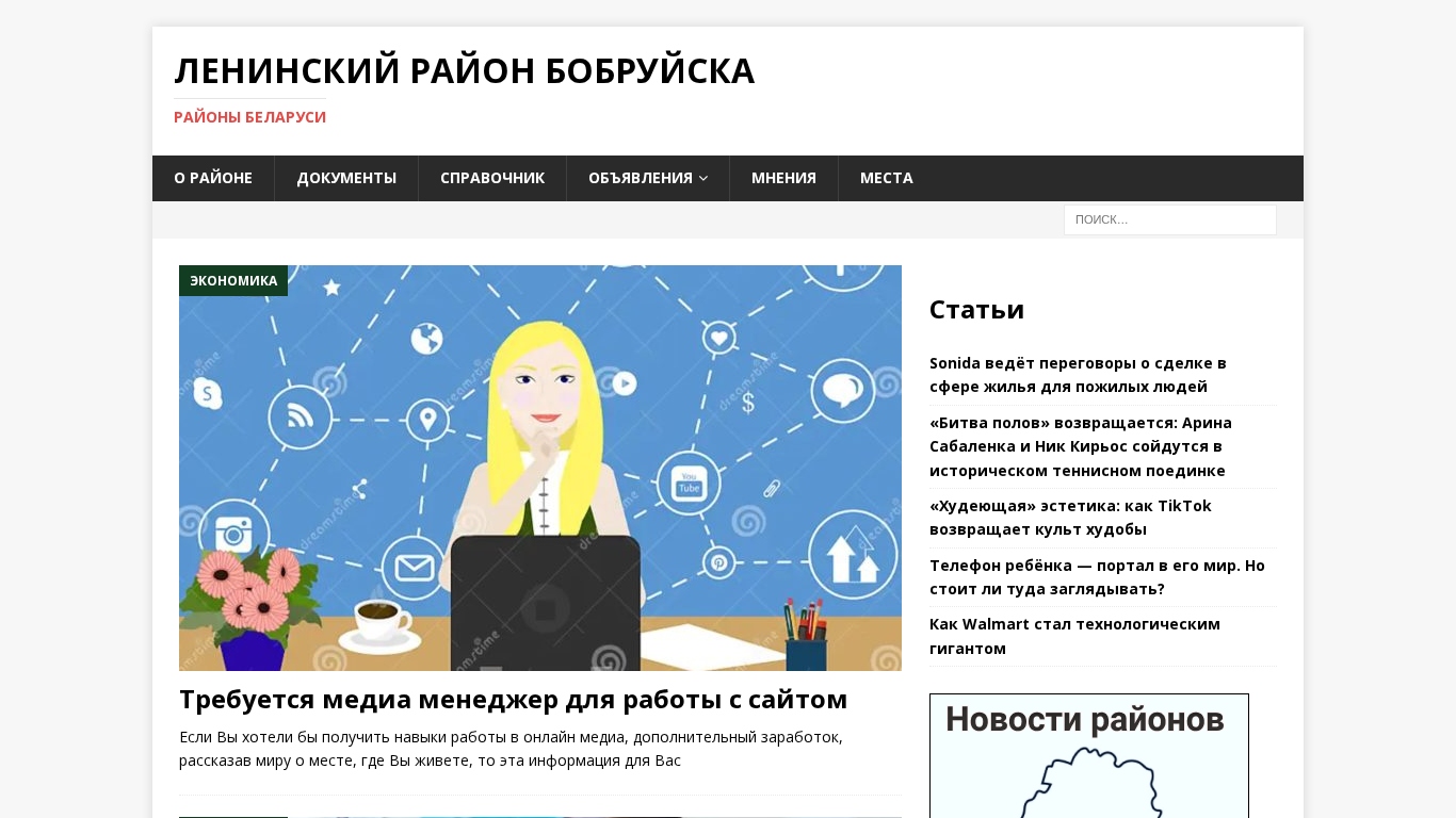 | AI-анализ | --- The portal bobrujsk-leninskij.rajon.by, titled "Ленинский район Бобруйска | Районы Беларуси," serves as a reference guide for information related to Leninsky District of Bobruisk and other regions of Belarus. The website offers various sections such as "О район" (About the region), "Документы" (Documents), "Справочник" (Directory), "Объявления" (Announcements), and "Мнения" (Opinions). The site also includes a "Места" (Places) section for users to search for specific topics. The website features job opportunities, including a media manager position for those interested in online media work, and a content manager position for the site. Additionally, there is a call for photo models for advertising tourist objectives within the region. The |