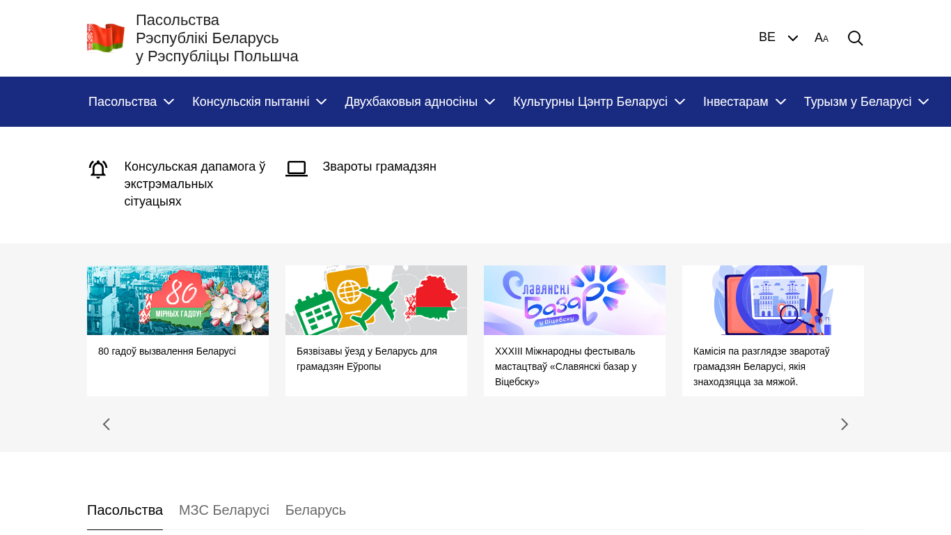 | Название / Заголовок | Пасольства Рэспублікі Беларусь у Рэспубліцы Польшча |