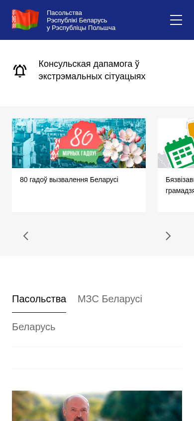 | AI-анализ | The web project "Пасольства Рэспублікі Беларусь у Рэспубліцы Польшча" (Belarusian embassies in Poland) is a government information website providing services and information related to Belarusian consular affairs in Poland. The title reflects the main focus of the site, which is to assist Belarusian citizens and foreign nationals in Poland with various consular matters, such as obtaining new or renewed passports, certifying documents, and registering marriages. The description includes keywords and top_words related to consular services, documents, and Polish-Belarusian relations. The website appears to offer a range of consular services, including processing applications for various documents and providing information on the rules and requirements for these services. It also includes information on fees and the process for submitting documents. The site is available in both |