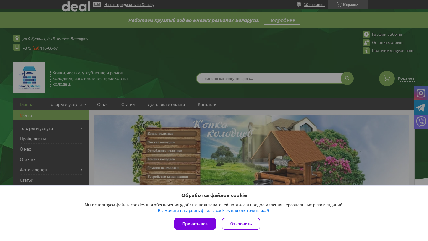 | SEO-описание | Копка, чистка, углубление и ремонт колодцев, монтаж канализации, изготовление домиков на колодец, разведывательное бурение, бурение скважин, колодецмастер |