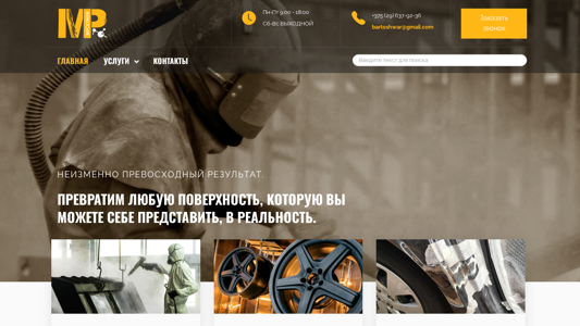 The website MPolimer is a full-cycle sandblasting and powder coating service provider based in Minsk, Belarus. The company offers sandblasting and drobeblasting cleaning services, as well as anti-corrosion, welding, and painting works. Key services include the restoration of automotive frames, sandblasting of rims, details for cars, motorcycles, and bicycles, production of furniture, and gardening furniture. The website also features information on the manufacturing of polymer coating and sandblasting supports, engine parts, and suspension elements. The top words on the website are 'painting', 'mebel' (Russian for 'furniture'), 'services', 'sandblasting', 'production', and 'mopolimer'. The site also includes contact information for making appointments.