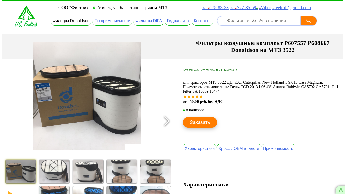 | Название / Заголовок | Фильтры воздушные комплект P607557 P608667 Donaldson на МТЗ 3522 от 450,00 руб. без НДС ★ Филтрих, Минск - фильтра и с/х запчасти |