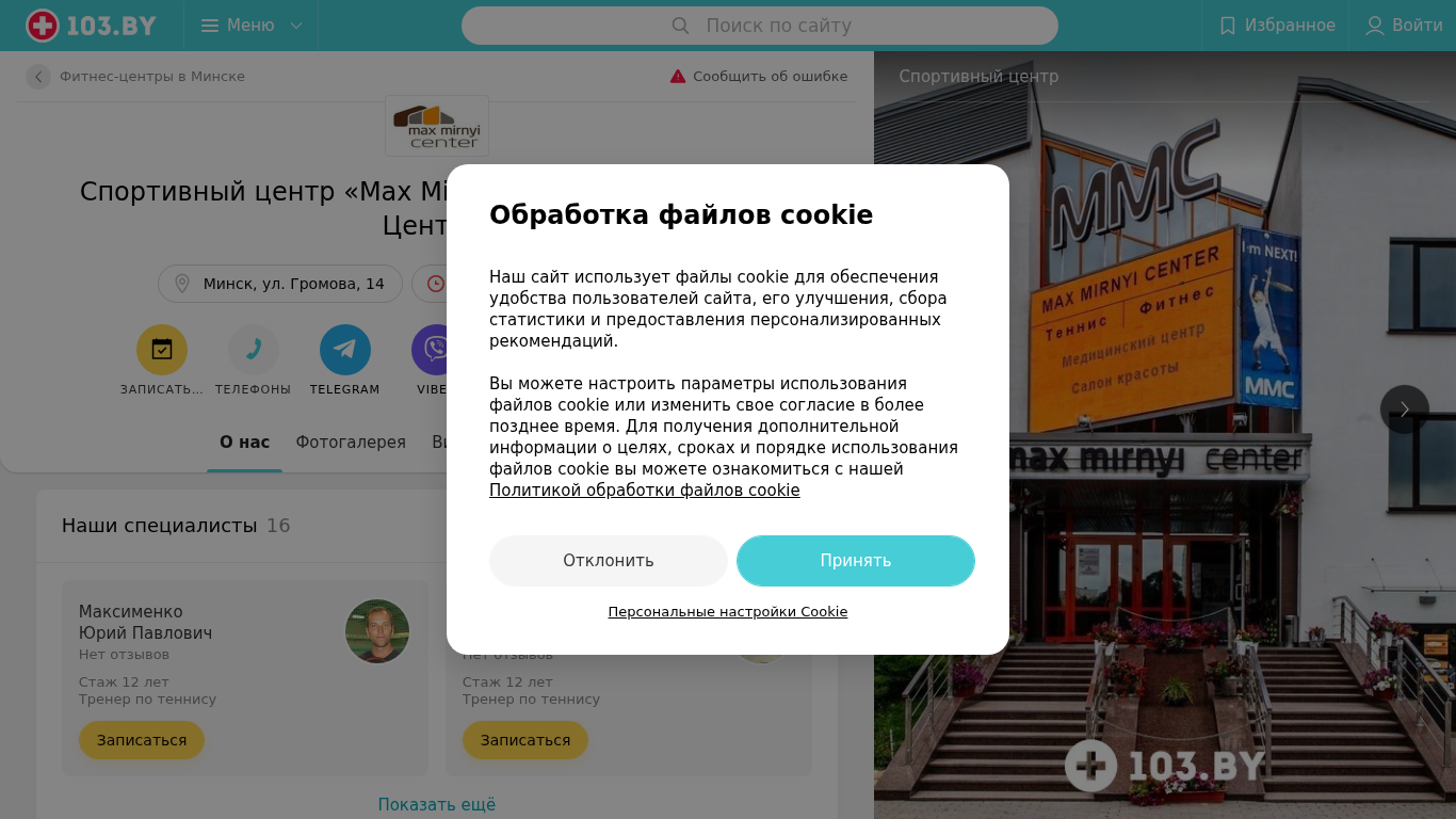 | SEO-описание | Спортивный центр Max Mirnyi Center (Макс Мирный Центр) Минск ул. Громова 14 – телефоны, время работы, отзывы и схема проезда в каталоге медицинского портала 103.by. |
