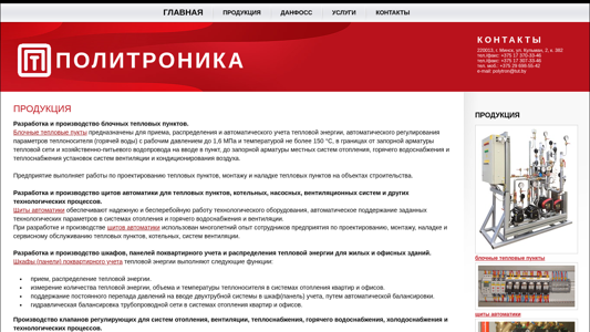 | SEO-описание | Предприятие Политроника занимается производством, поставкой, проектированием, монтажом и сервисным обслуживанием энергосберегаюшего оборудования для жилых, общественных и производственных зданий. |