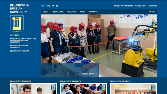 | AI-анализ | This website is the official English-language portal of the Belarusian-Russian University. It provides information on the university, its history, administration, faculties, and educational programs for prospective students. The university offers undergraduate, graduate, master's degree, and postgraduate programs in various fields, including engineering, economics, and construction. The website includes sections on admission procedure, cost of education, preparatory courses, and contacts. The university has faculties in mechanical engineering, construction, electrical engineering, automotive engineering, economics, correspondence education, and engineering and economics. The website is designed with a user-friendly interface and includes multimedia content, such as videos about the university. It is operated by the Belarusian-Russian University and is accessible to the public. |