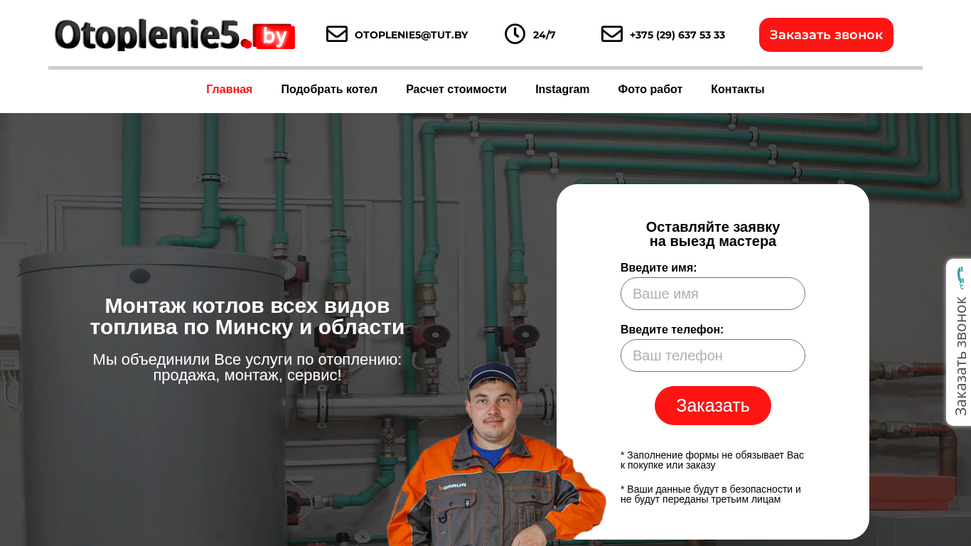 | SEO-описание | Монтаж систем отопления в Минске и Минской области, продажа котлов всех видов топлива в Минске. Бесплатная консультация, рассрочка платежа! Все виды котлов - газовые - электрические - твердотопливные котлы |
