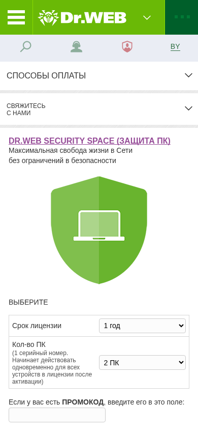 | AI-анализ | The portal estore.drweb-av.by offers customers the opportunity to purchase Dr.Web Security Space, an extensive antivirus protection suite for home computers. The purchase includes a free security package for mobile Android devices as a bonus. The site includes sections for registration, technical support, documentation, downloads, and sales, as well as a search function and a support section with options for contacting the company via phone, Skype, or Telegram. The site also offers support for multiple languages, including Russian, CN, DE, EN, ES, FR, IT, JP, KZ, UZ, PL, BY, ID, and a separate section for business customers. The main product offerings are Dr.Web Security Space for personal computers, Dr.Web Security Space for mobile devices, Dr.Web Family Security, Dr.Web Desktop Security Suite for up to 50 employees, Dr.Web Server |