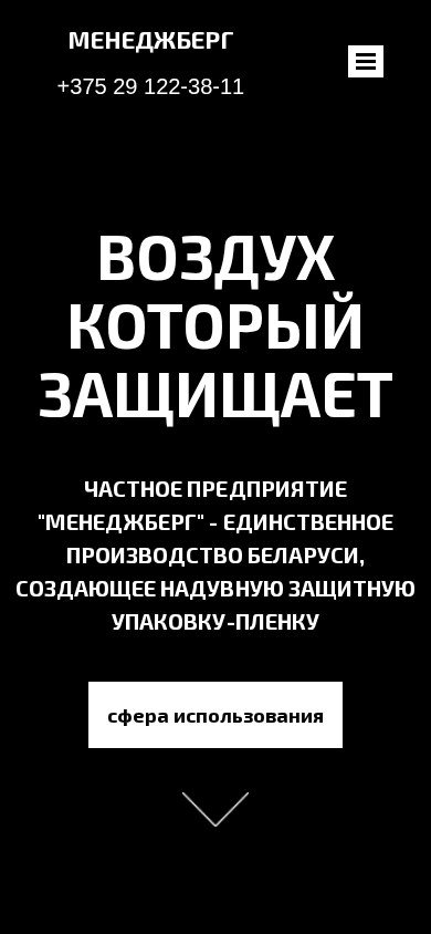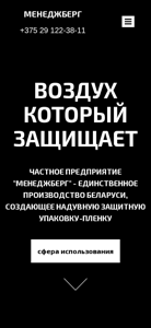 | AI-анализ | The web project "MennegBerg" is a Belarusian production company specializing in the manufacturing of inflatable protective packaging-film with the use of air columns. The product, an innovative air-filled protective material, is gaining popularity in commercial storage and transportation, domestic use, and e-commerce. Air stopper valves allow the film to remain inflated for extended periods, while damage to one column has no effect on the protective properties of the film as each column has its own valve. The film can withstand up to 120 kg of pressure and provides effective shock absorption, surpassing the protective capabilities of previous packaging materials such as air-filled bags, corrugated cardboard, expanded polystyrene, and the like. The use of this material in packaging not only reduces production costs by minimizing damage and product loss but also increases customer interest and sales through the creation of a competitive |