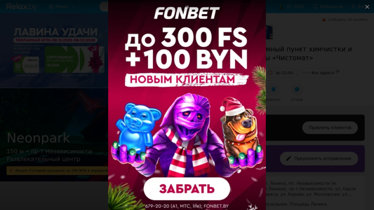 | SEO-описание | Автоматизированный приёмный пункт химчистки и ремонта одежды Чистомат в Минске – отзывы, телефоны, график работы и карта проезда на Relax.by |