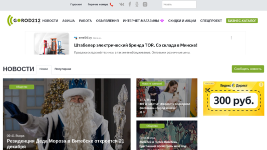 | SEO-описание | Городской портал Витебска. Новости, реклама, объявления, афиша мероприятий, работа, вакансии, резюме, скидки и акции, спецпроекты. Только самые актуальные новости. Прогноз погоды, расписание транспорта, гороскоп всех знаков зодиака на сегодня. экстренные службы и горячие номера, курсы валют. |