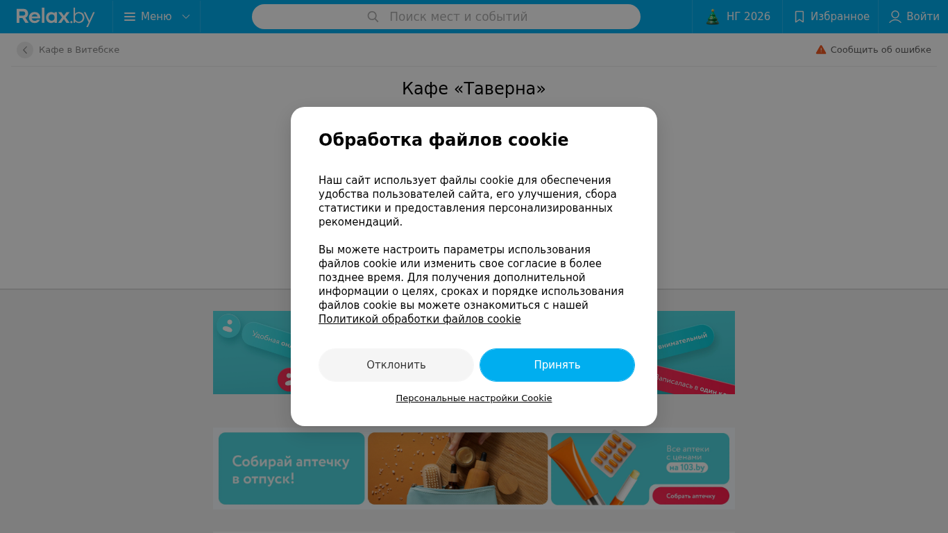 | SEO-описание | Кафе Таверна в Витебске – ⚡меню с ценами и фото, ⚡отзывы посетителей, адрес на карте, ✍бронирование столика онлайн на Relax.by. |