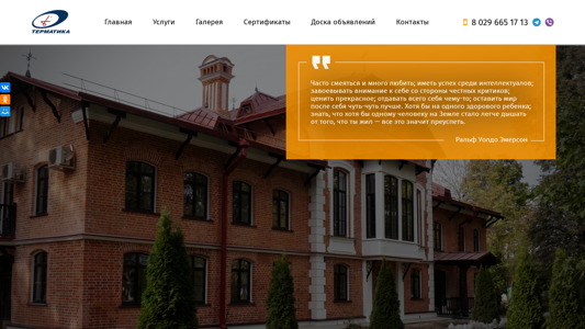 | AI-анализ | The web project "Фасадные работы в Гомеле с «Терматика»" (Facade Works in Homel with "Thermatika") is a website dedicated to the company "Терматика" that offers various services related to facade works, restoration, repair and decoration, as well as krovel works, construction of houses, and interior design. The website provides information about the company's experience of over 15 years, guarantees on all works, and individual approach to each client, with reasonable prices and on-time completion of projects. The website also features a gallery of past projects and contact information, including phone numbers and email address. The company operates in Homel, as well as in Minsk, Brest, Grodno, Mogilev, and Vitebsk. The website is available at termatika.by. |