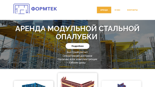 | Название / Заголовок | ФормТек - Аренда Опалубки. Лучшие условия. Быстрый расчет. |