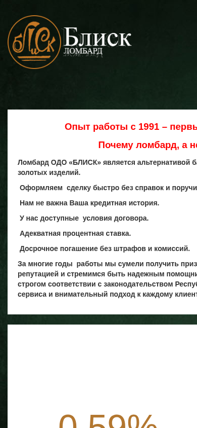 | Название / Заголовок | Ломбард ОДО "БЛИСК" в Гомеле |